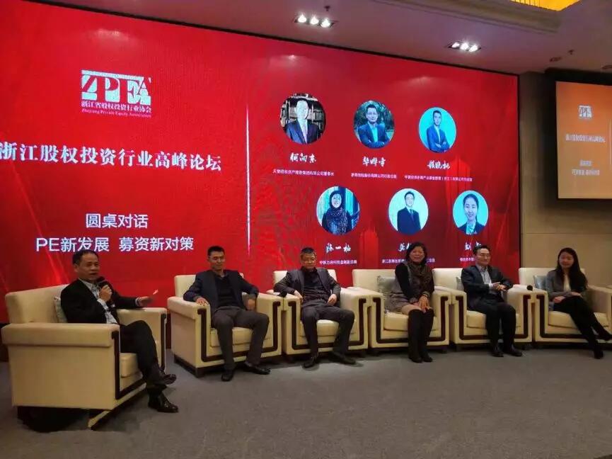 在圓桌沙龍環(huán)節(jié),我司何董作為“PE新發(fā)展、募資新對策”沙龍主持人對話中銀投資浙商產(chǎn)業(yè)基金總經(jīng)理錢曉楓、浙商創(chuàng)投行政總裁華曄宇、中新力合副總裁陳一梅、浙商創(chuàng)新資本總經(jīng)理龔伯勇、